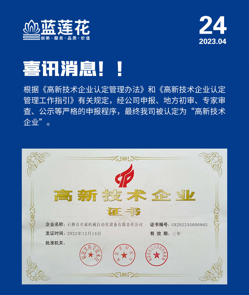 喜訊!公司榮獲國家“高新技術企業(yè)”認證